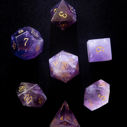 Natural Amethyst Polyhedral Dice Set - D&D Essentials - Gemstone DND RPG Dice 1d20 or 7 Dice Set