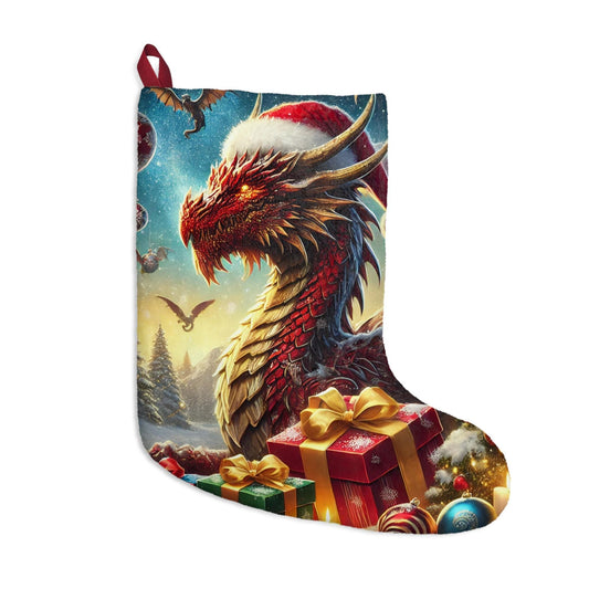 Christmas Dragon Stocking - Fantasy Christmas Decor - Dragon Wearing Santa Hat Choose Your Favorite - Great for Dungeons & Dragons Fans Xmas
