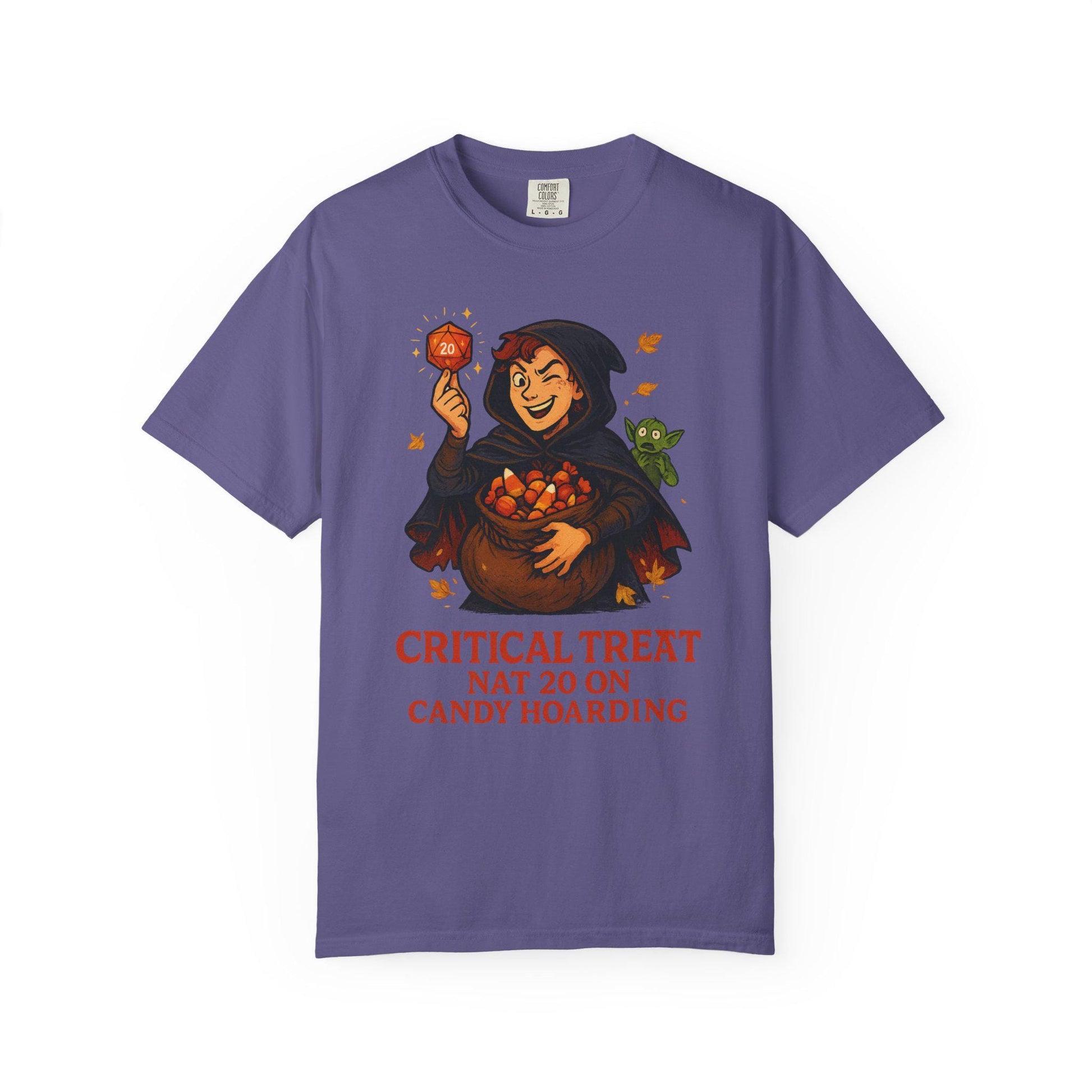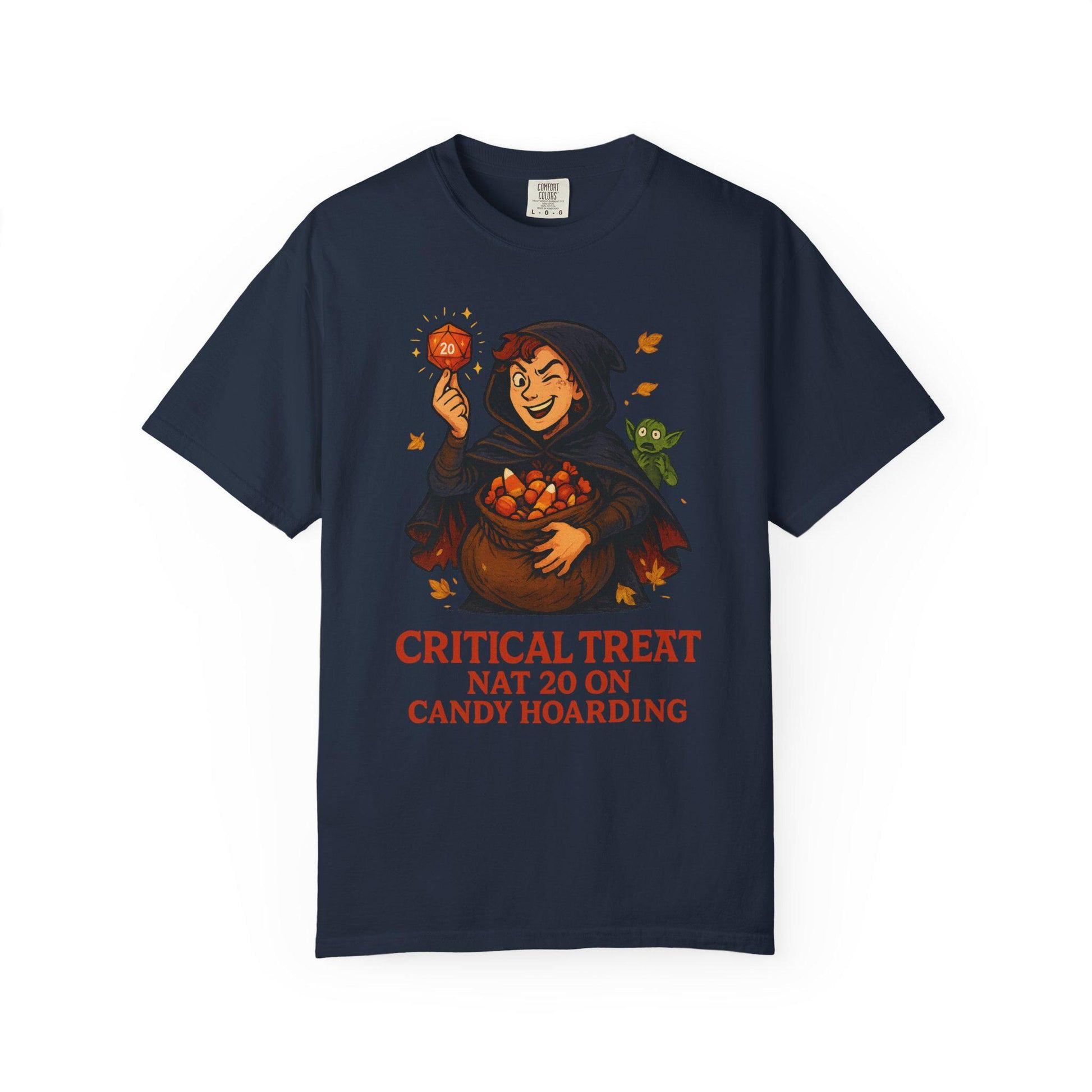 D&D Halloween Shirt D20 Critical Treat, Dungeons and Dragons Player T-Shirt Roll for Candy, Rogue Loot Bag, Dungeon Master Gift DND DM
