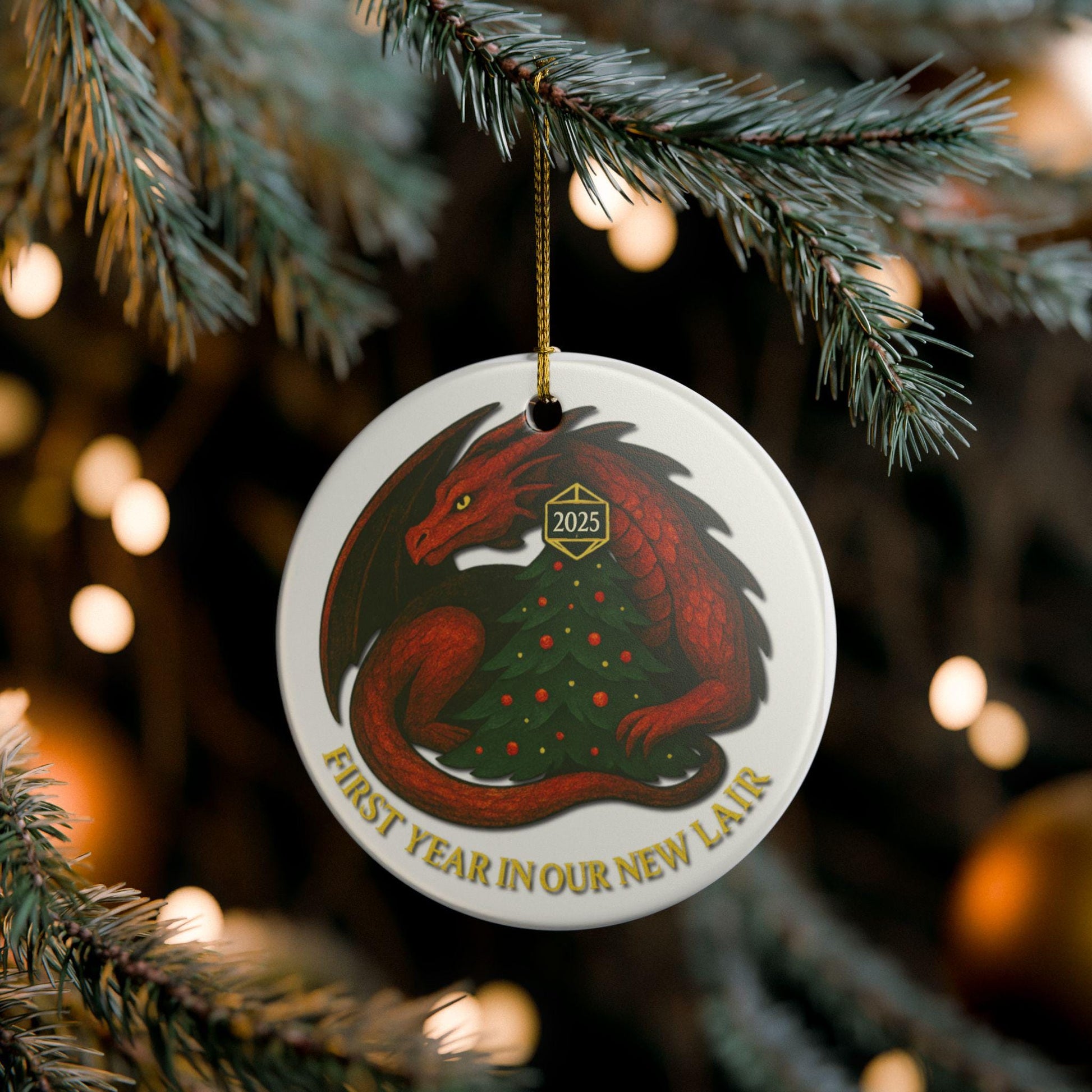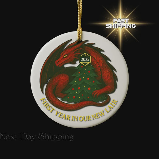 Dragon Ceramic Ornament 2025 DND Housewarming Gift, D&D Christmas Decoration, Holiday Gift for New Home, DND Fantasy Keepsake